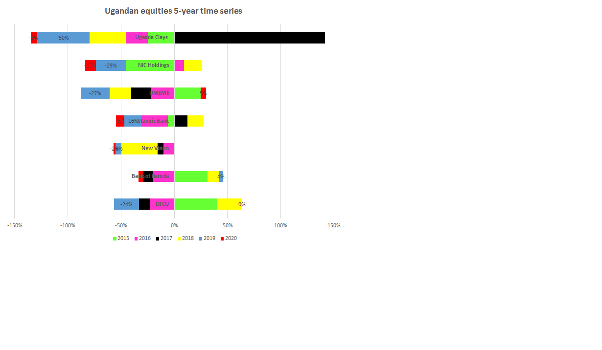 Covid-19 effect: Selected Ugandan equities 2015-2020