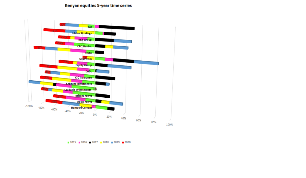 Covid-19 effect: Selected Kenyan equities 2015-2020